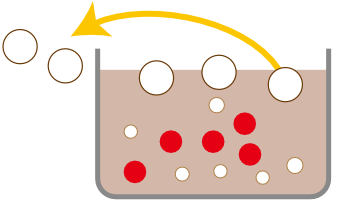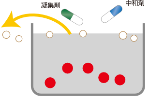 前処理された汚泥に薬品を添加し、処理水と濃縮した汚泥に分離します。処理水は2次処理に進み、濃縮した汚泥はリサイクル処理に進みます。
