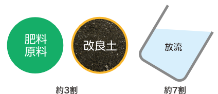 処理された汚泥の約3割は改良土(トマソイル:北海道認定リサイクル製品)や肥料原料となり、製品として各地で有効利用されております。