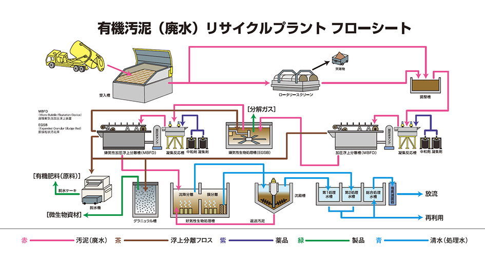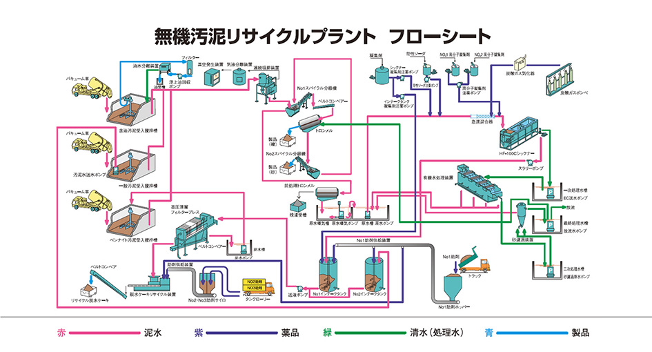 有機汚泥と無機汚泥にはそれぞれの性質があり、その性質に応じて2つのラインで適正に処理しています。